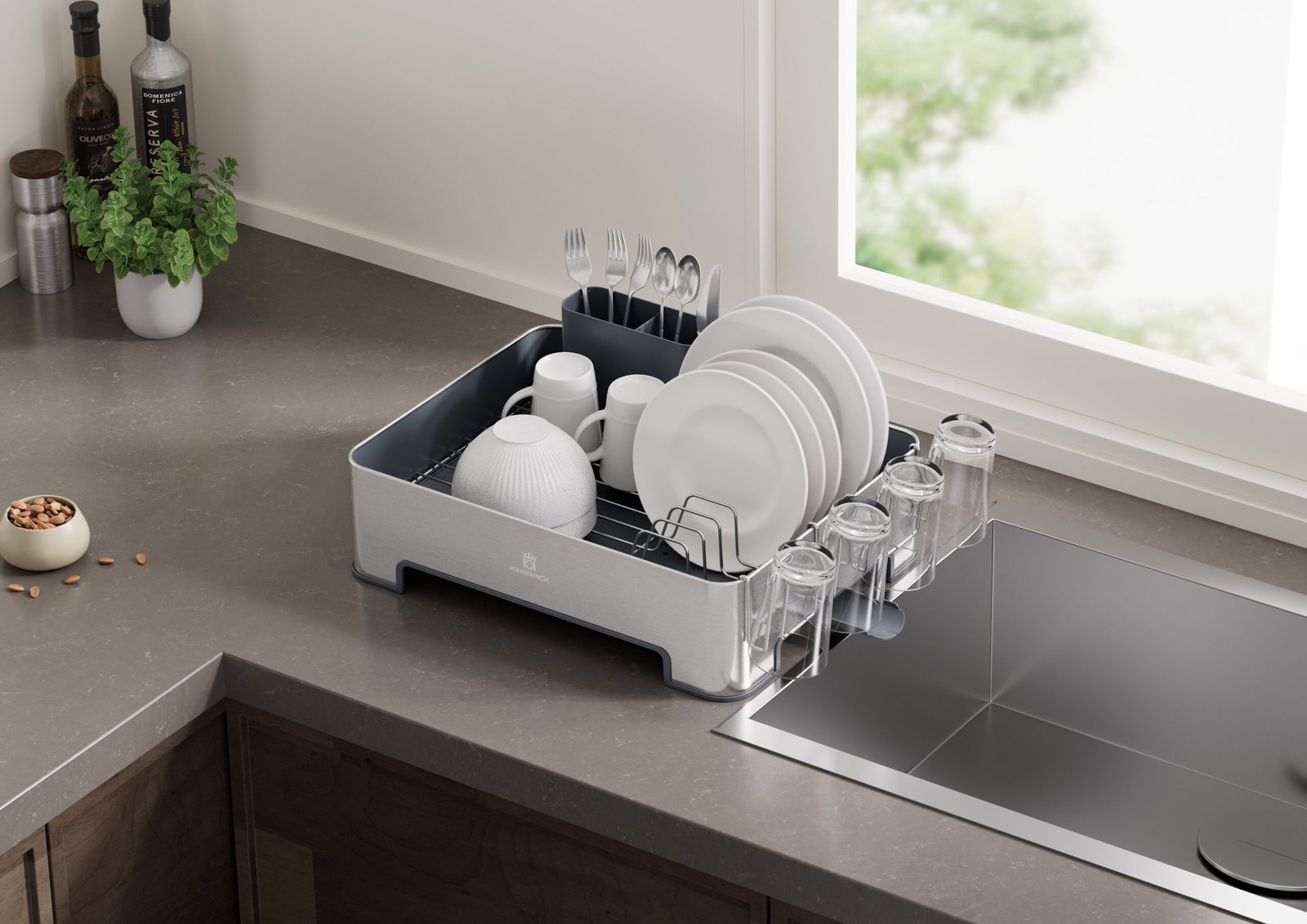 El Secaplatos Nova combina estilo, durabilidad y practicidad, ofreciendo una solución inteligente para quienes buscan mantener la cocina ordenada y seca con un toque de diseño contemporáneo. Con una capacidad de 11 platos, más de 4 vasos, 2 ollas y cubiertos varios.