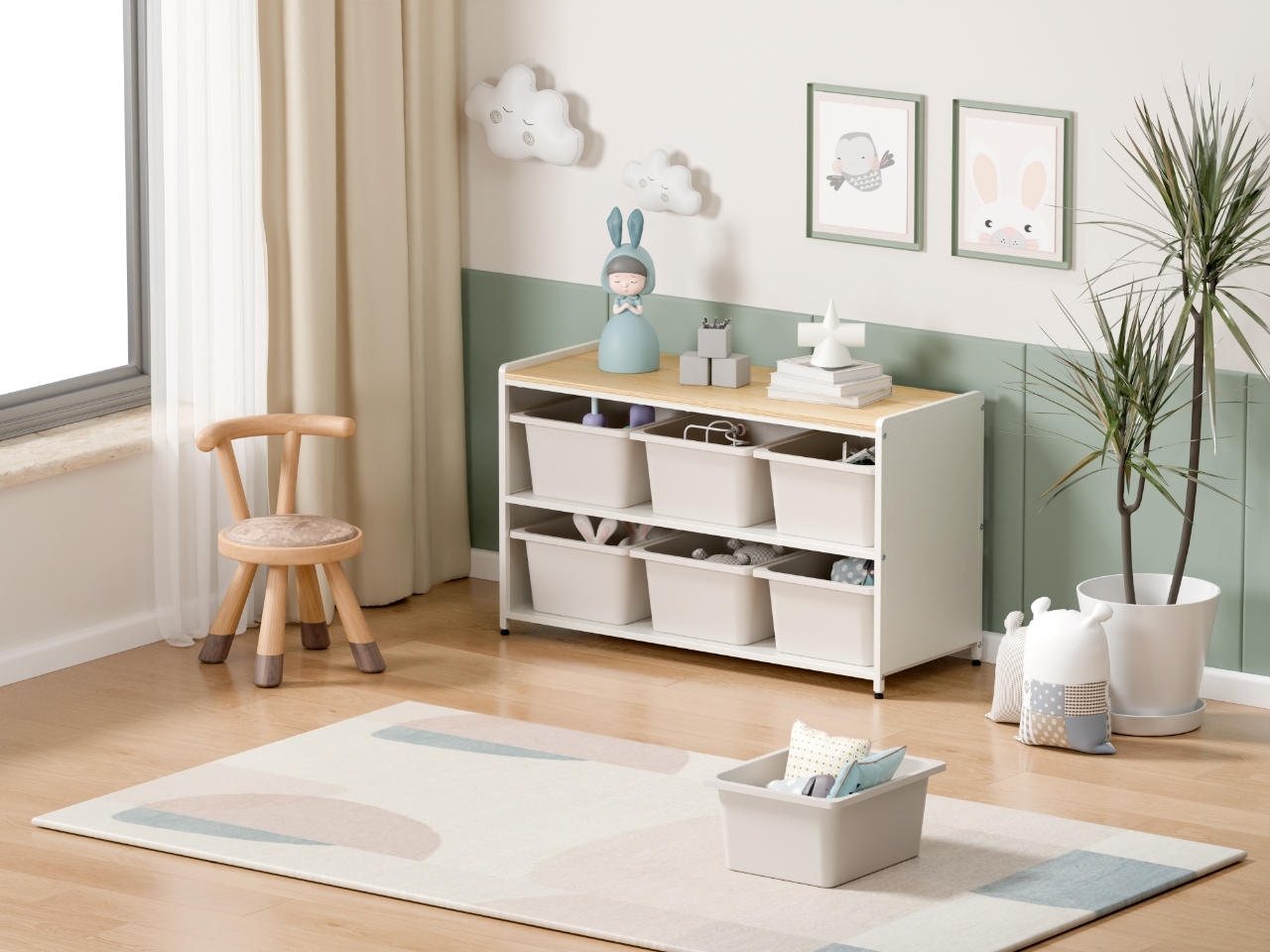 Su estilo limpio y minimalista se adapta perfectamente a dormitorios infantiles, playrooms o espacios de guardado.