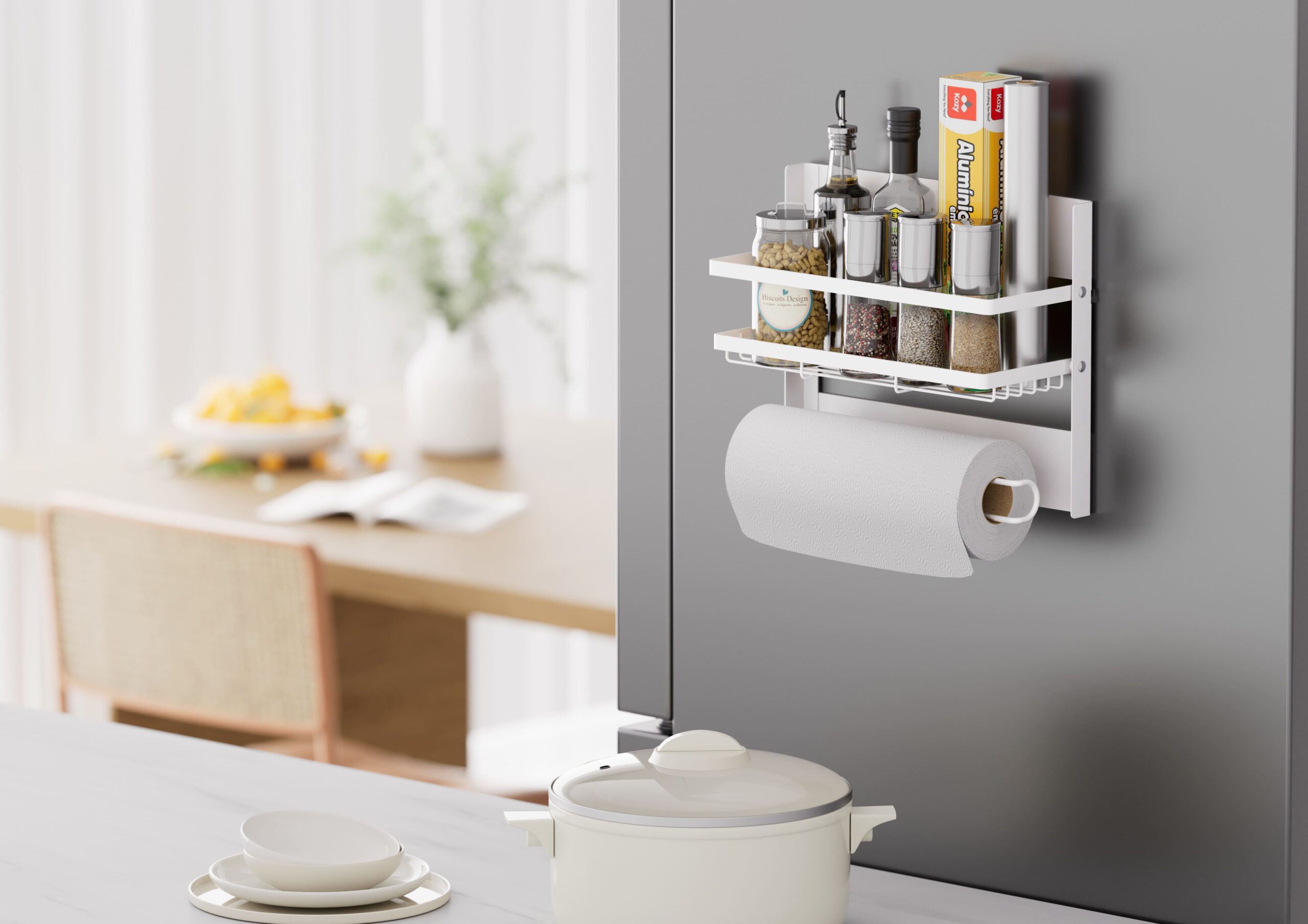 Optimá el espacio de tu cocina con el Porta Rollo de Cocina Imantado Kingrack, una solución práctica e inteligente para mantener el rollo de papel siempre a mano sin perforar paredes. Su diseño imantado permite colocarlo fácilmente en la heladera o en cualquier superficie metálica.