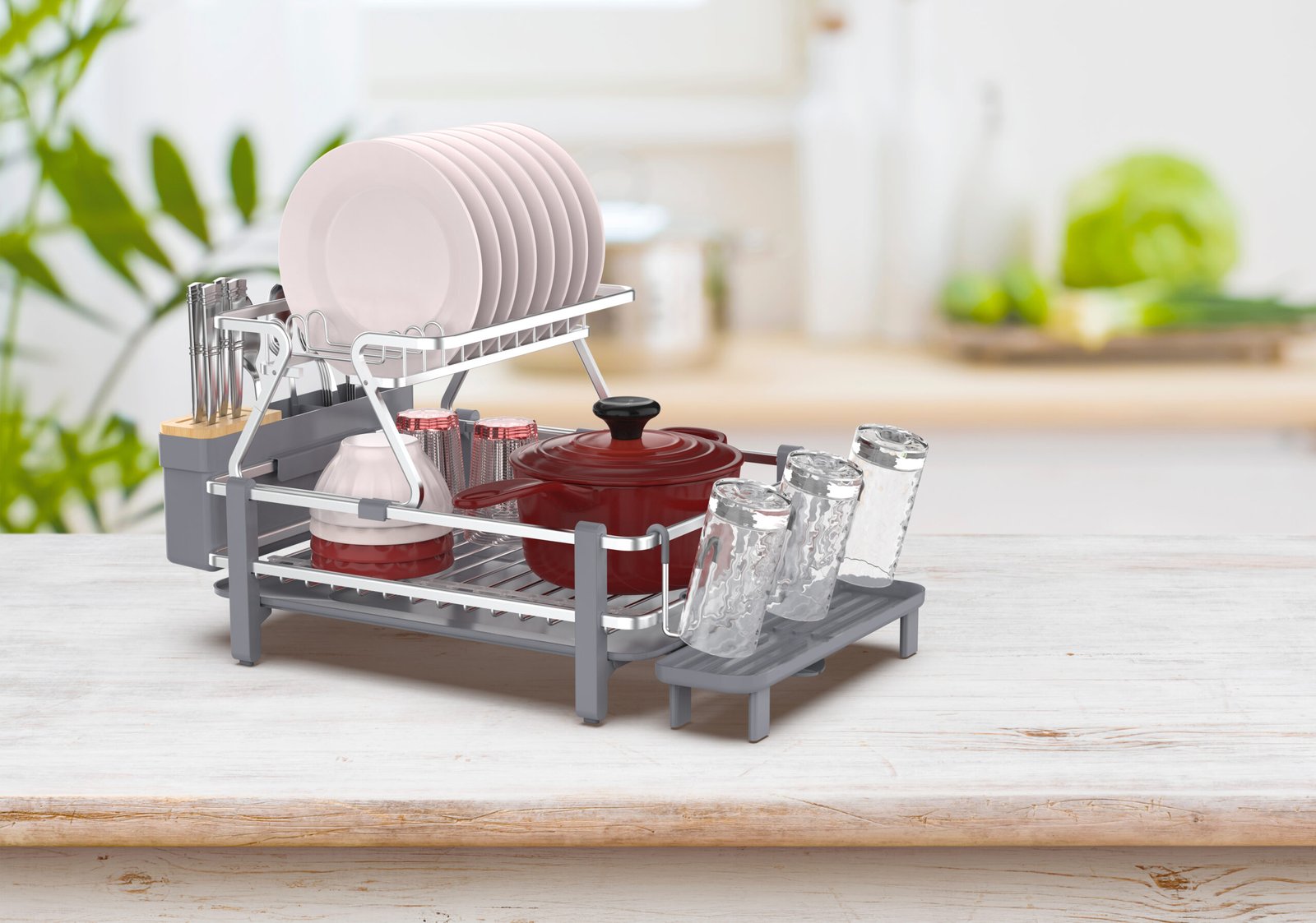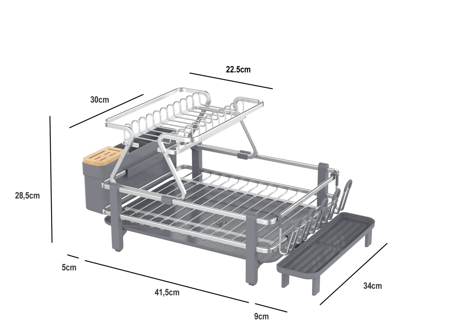 Organiza tu cocina con estilo y eficiencia con este moderno secaplatos de doble nivel. Su diseño funcional y materiales resistentes lo convierten en la opción ideal para mantener tus utensilios secos y ordenados.