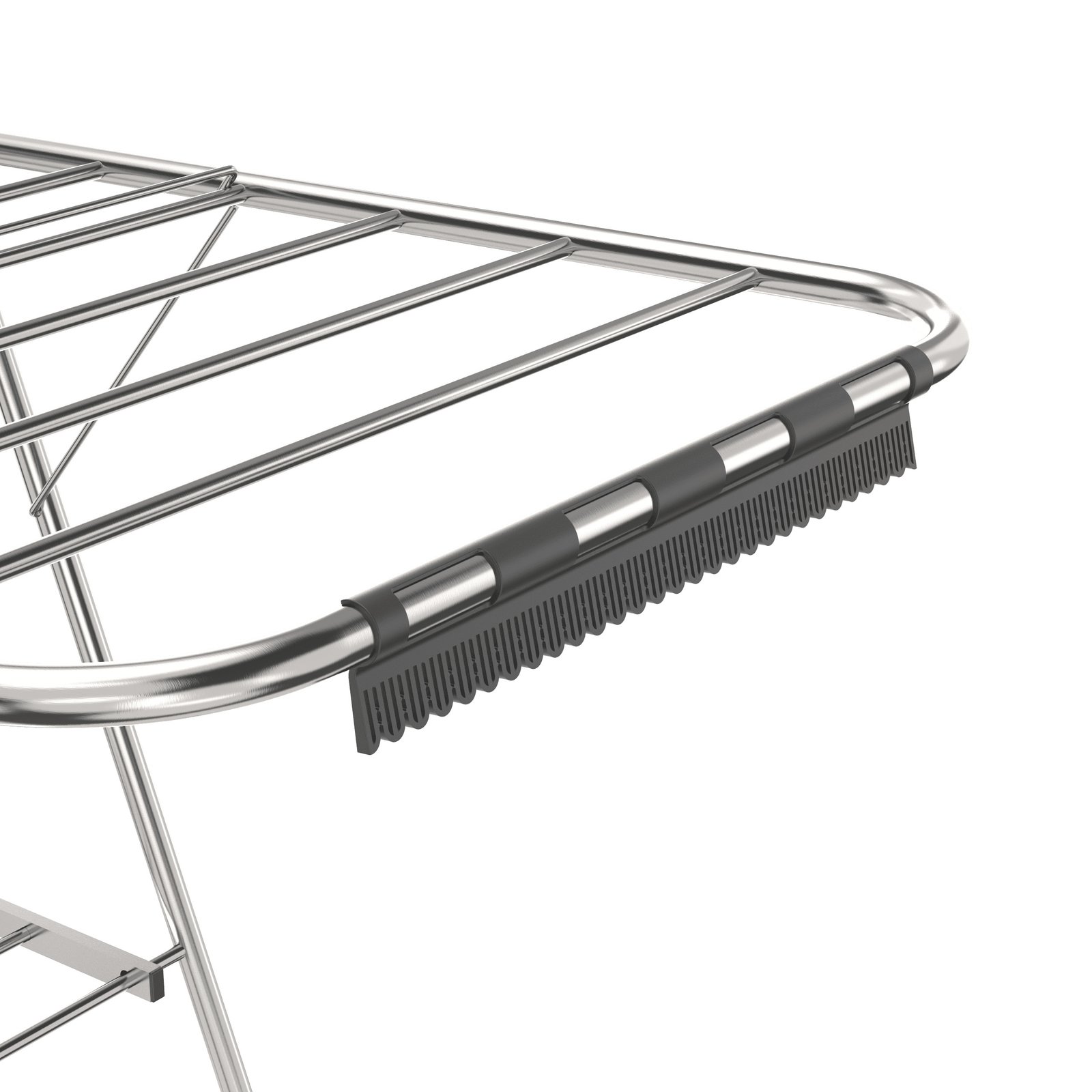 • Base antideslizante: Patas con topes de goma negra que evitan el movimiento del tender y protegen el suelo.